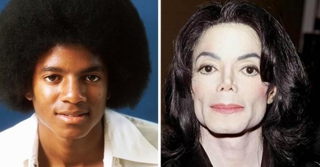 Всемирно известный музыкант Майкл Джексон также известен как особый любитель пластических операций. Некоторые хирурги считают, что он перенёс множество операций по изменению формы носа, лба, губ и скул. Певец буквально потерял своё настоящее лицо из-за свой зависимости к пластике.
