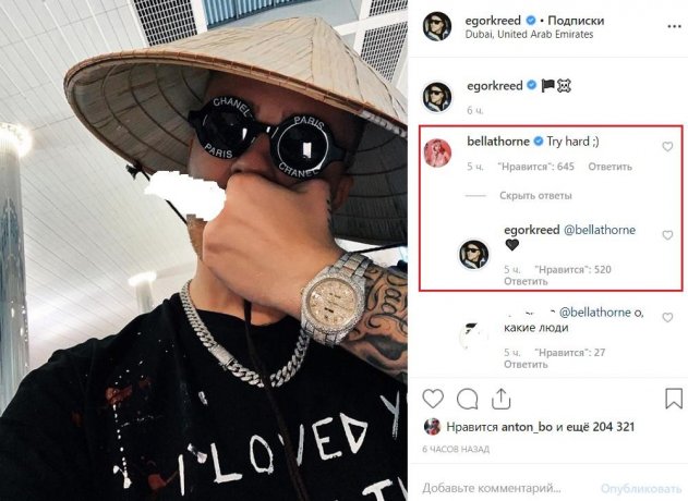 Однако, судя по всему, бузова может и не надеяться на любовь завидного холостяка. Судя по всему, Крид уже занят, причем девушкой, которая обгоняет ведущую «Дома-2» по популярности. Своей последней публикацией, а точнее комментарием, Крид подогрел слухи о романе с известной американской актрисой и певицей Беллой Торн. Исполнитель отправил знаменитости любовный эмоджи в виде сердца. Похоже, Бузова в пролете – Егор, видимо, уже сделал свой выбор.