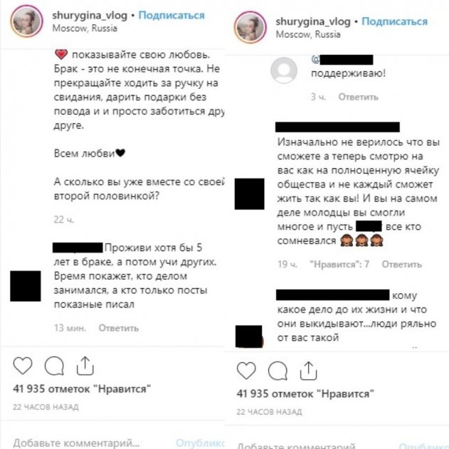 Тем не менее, некоторые отреагировали на пост довольно позитивно: «Изначально не верилось, что вы сможете, а теперь смотрю на вас как на полноценную ячейку общества, и не каждый сможет жить так, как вы!», «Нормальная семейная пара».