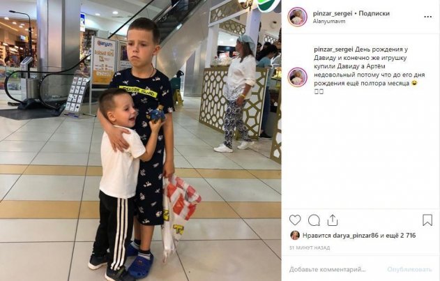 На одном из новых фото на странице мужа Дарьи Сергея запечатлены сыновья пары, а старший кажется очень грустным. Пынзарь объясняет, что Артем недоволен из-за некупленной игрушки, однако, учитывая внезапный отъезд матери в Россию, появляются подозрения, что не только игрушка стала поводом для грусти ребенка. Вероятно, мамы опять нет рядом с детьми в такой важный день по причине того, что она отправилась на обследование к своему пластическому хирургу по поводу пластики. Но разве нельзя было отложить поездку на другой день? Или же произошло что-то ужасное, из-за чего медлить было нельзя?