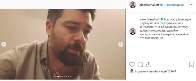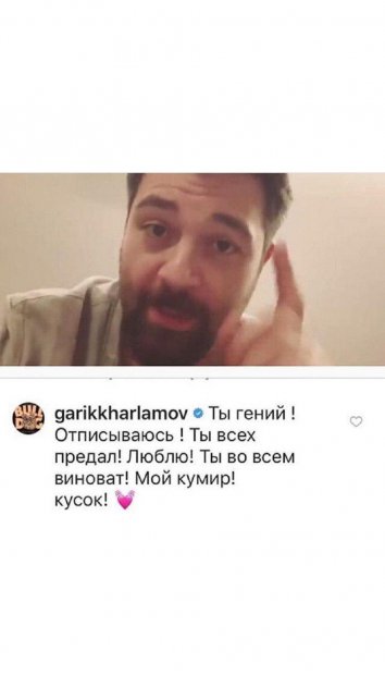 «Ты гений ! Отписываюсь ! Ты всех предал! Люблю! Ты во всем виноват! Мой кумир!» – отписал мнение Чумакова комментарий Гарик.