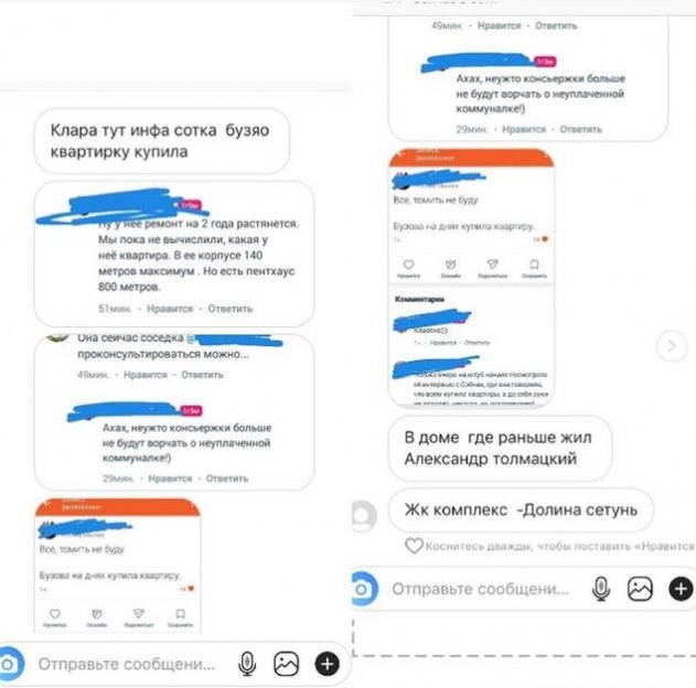 Однако, вероятно, с недавних пор ситуация изменилась. Как сообщают инсайдеры, Бузова тайно купила себе квартиру в элитном районе Москвы. По информации, ведущая «Дома-2» приобрела недвижимость в жилом комплексе класса класса Premium «Долина Сетунь», в доме, где ранее жил музыкальный продюсер Александр Толмацкий. Кроме того, по словам инсайдеров, певица уже начала делать в приобретенной квартире ремонт, который, предполагает источник, растянется года на два. А стоимость достигает 60 миллионов рублей.