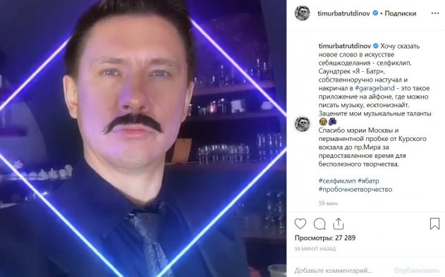 Вероятно, новость дошла и до самого резидента Comedy Club, который, видимо, приревновал Бузову к своему клону-солдату. Недавно Тимур опубликовал на своей странице забавную публикацию, отметив, что записал сэлфиклип к саундтреку «Я – Батр».