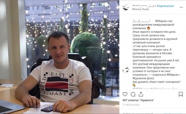 Однако, Илья собирается не только покорять эстраду, совсем недавно Яббаров поделился радостной новостью, он рассказал, что международная компания, которая занимается криптовалютой, предложила ему должность руководителя филиала в Москве. По словам Ильи, собеседование проходило около четырех часов, и ему предложили очень привлекательные условия, а он не смог отказать. Что это за компания, Яббаров не уточняет, известно лишь то, что существует она уже 8 лет.
