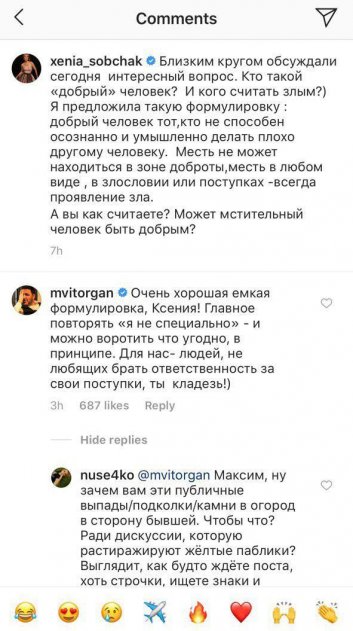 Только сегодня Виторган дал понять, что у него с женой после развода началась едва ли не война. Об этом можно судить по комментарию Максима, который тот оставил под постом Ксении о доброте и мести.