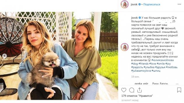 «Парень наш очень требовательный, рычит и лает когда что-то не так, требует внимания к себе», - написала Юлия в личном микроблоге в Instagram. Также певица попросила интернет-пользователей помочь ей назвать нового домашнего любимца. Напомним, что Юлия Самойлова трижды является крёстной матерью детей своих самых близких друзей.