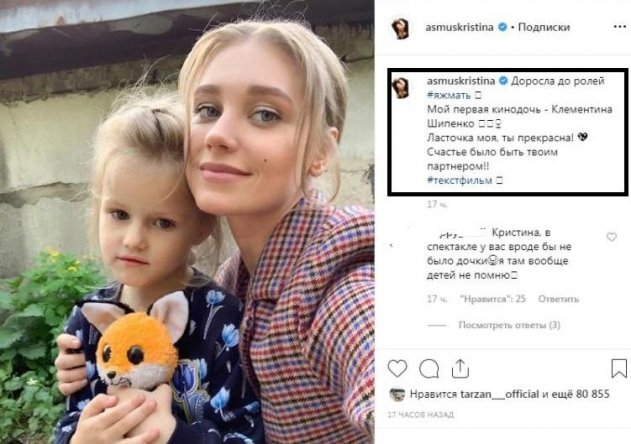 Проблемные отношения Кристины Асмус и Гарика Харламов, наверное, не обсуждал ещё только ленивый: разгульный образ жизни, череда измен и возможный развод. Несмотря на это, пара продолжат жить вместе и воспитывать совместную дочь Настю. Однако, как оказалось, девочка может быть не единственным ребёнком в семье. На днях актриса похвасталась очередным проектом, где по сюжету фильма «Текст» играет роль матери. Об этом заявила Асмус в соцсети, опубликовав совместный снимок с «кинодочерью».
