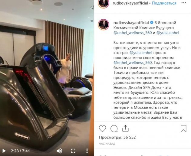 Недавно Яна Рудсковская выставила на своей странице в Instagram новое видео, посвященное недавно открывшейся в Москве «клинике будущего». Действительно, учреждение обустроено новейшим образом и использует для своих процедур необычное оборудование, которым могут похвастаться только зарубежные салоны. Продюсера чрезвычайно впечатлила обстановка. По ее словам, подобный уровень оказания услуг она видела только в Токио, но безумно рада, что теперь может посещать любимые процедуры в столице.