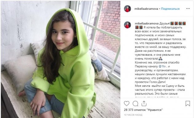 Закончился повторный финал шоу «Голос.Дети», в котором не участвовала победительница предыдущего этапа, так как «Первый канал» при помощи проверок выяснил, что голосование оказалось фальшивым. Когда покупку голосов за Микеллу Абрамову подтвердили официальным заявлением, дочь Алсу не допустили к участию. Сами же родители от каких-либо комментариев по этому поводу отказались.