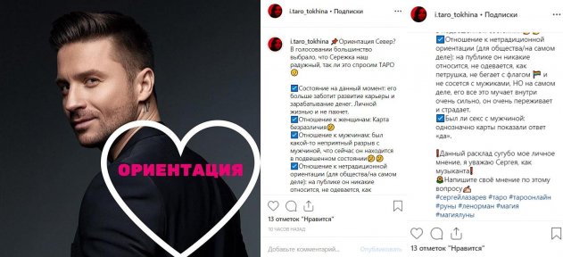 Слухи о нетрадиционной ориентации Сергея Лазарева ходят уже давно, однако до сих пор нет никаких подтверждений тому, что исполнитель не интересуется женщинами. Сетевой таролог решила провести свое «расследование» по этому поводу. Эксперт по картам Таро приоткрыла тайну личной жизни Лазарева. Большинство показателей, выходит, свидетельствуют о том, что певец, как и предполагали пользователи, все-таки «радужный»?