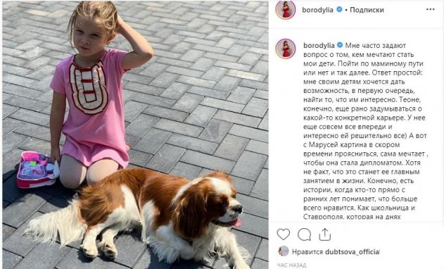 «Мне часто задают вопрос о том, кем мечтают стать мои дети. Пойти по маминому пути, или нет, и так далее. Ответ простой: мне своим детям хочется дать возможность, в первую очередь, найти то, что им интересно», – отметила в Instagram Бородина.