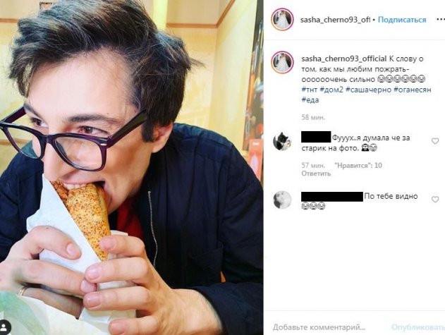 Видно, что седой и прожорливый Оганесян за обе щеки запихивал еду быстрого питания. Такими темпами он догонит супругу по размерам, ведь наесть килограммы легко, а вот избавиться от них – большая проблема. Вероятно, Черно пошла по пути наименьшего сопротивления, и, вместо того, чтобы похудеть, начала откармливать худощавого возлюбленного.