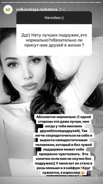Судя по словам Решетовой, она легко могла оказаться «на цепи» у Тимати. Ради богатого жениха можно и не такое потерпеть. Это объясняет, почему она оставила себе котенка и постоянно наведывается на работу, лишь бы поговорить хоть с кем-нибудь. И, еще, как же подружка Наталья Рудова? Пару недель назад они были «не разлей вода», а сейчас и вовсе перестали вспоминать друг о друге. Возможно, флирт актрисы с Тимати разорвал и без того некрепкие дружеские связи.