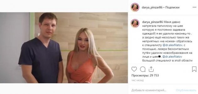 О пагубном пристрастии Даши Пынзарь к пластическим операциям уже известно, наверное, каждому. В свои 33 года звезда «Дома-2» сделала маммопластику, контурную пластику губ, скулы, коррекцию второго подбородка и череду «уколов красоты». А сегодня блондинка и вовсе похвасталась пополнением в списке хирургических вмешательств. В соцсети Даша опубликовала рекламный пост, где пропиарила очередную клинику с лучшими врачами.
