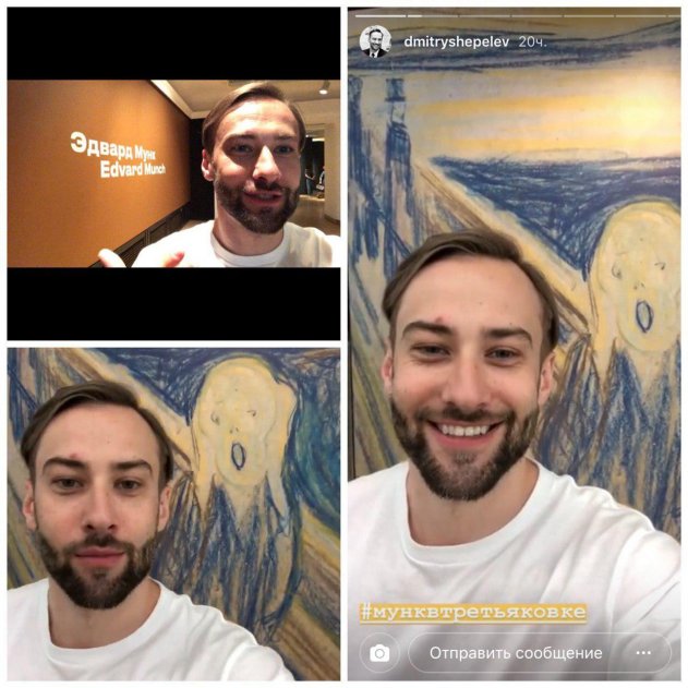 Попав на долгожданную выставку работ Эдварда Мунка, телеведущий Шепелев поделился с фолловерами данной новостью в своём Instagram. Дмитрий выделил особое внимание цитате художника: «Я пережил все возможные зависимости: алкоголь, табак, казино и … Токсичные женщины».
