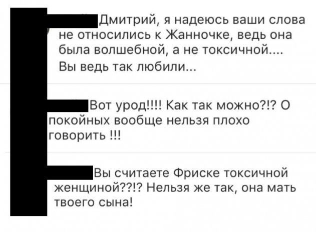 Фанаты в сети негодуют, ведь после скандала с родственниками Жанны и их общим ребёнком Платоном многие зрители начали считать Шепелева ужасным человеком. Сейчас же он обратил против себя ещё большее количество человек, потому что показал явное облегчение, злость и презрение к покойной певице – уверена публика.