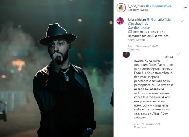 Скандальный уход L’One из Black Star закончился эмоциональной перепалкой рэпера с основателем лейбла Тимати, развернувшейся в Instagram прямо на глазах тысяч поклонников обоих исполнителей. При этом в стороне от скандала не смогли остаться и друзья Левана Горозии по несчастью – Кристина Саркисян и Егор Крид, на собственной шкуре ощутившие, чем сулит отказ от продления контракта с дьяволом Тимати.
