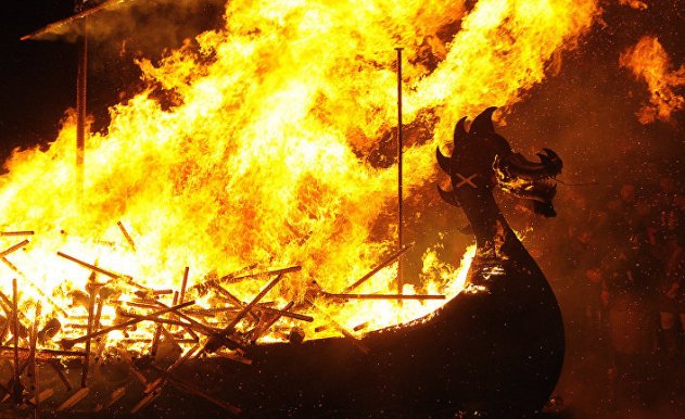 Арабский писатель и путешественник Ахмад ибн Фадлан описывает необычную церемонию погребения, свидетелем которой он стал в 921 году на берегах Волги: