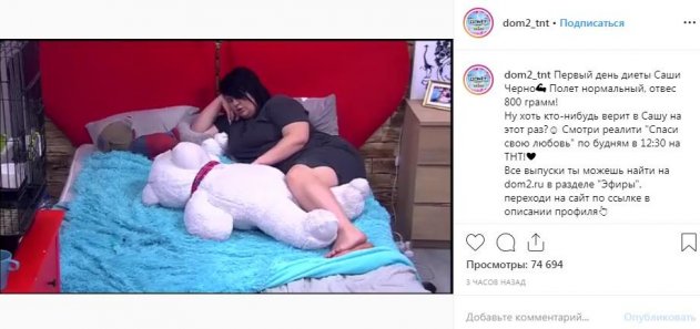 «За что мне эти наказания? Почему я жирная?» – с этих слов начался диалог Саши Черно со своим супругом Йосифом Оганесяном. Участница телепроектов «Дом-2» и «Спаси нашу любовь» практически впала в депрессию из-за своего веса. Девушка заметно имеет лишние килограммы, но никак не может сбросить хотя бы несколько ради своего здоровья. Именно вес мешает ей забеременеть, плохо сказывается на отношениях с другими участниками и постоянно становится причиной насмешек. На этот раз даже ТНТ поиздевался над Черно за ее обжорство, написав, что «полет нормальный, отвес – 800 г».