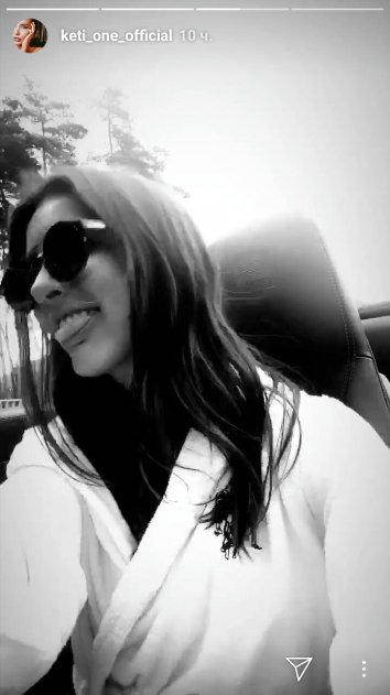 Например, сегодня влюбленная Кети сняла видео, на котором она сразу же после душа с мокрой головой в махровом белом халате поехала за покупками на кабриолете. Выглядела она при этом очень счастливой и слегка сумасшедшей.