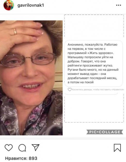 Неравнодушные сообщают – Эрнст уволит Малышеву с «Первого» за снижение рейтингов. В группе Instagram gavrilovnak1 было опубликовано сообщение инсайдеров – мужчина рассказал, что работает на канале с программой «Жить здорово!»