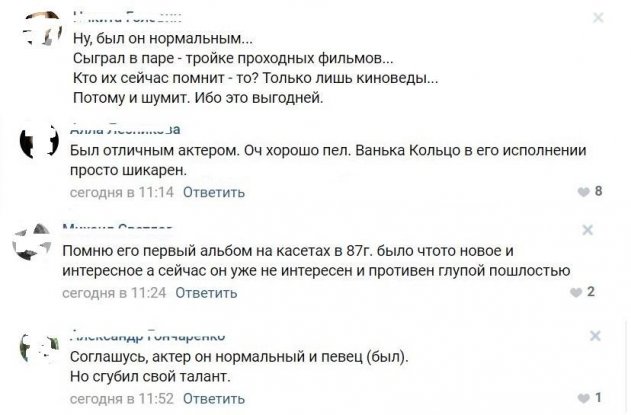 Однако, преданные поклонники чрезвычайно огорчены поведением артиста, они вспоминают, что на его счету есть качественные роли в кино и хорошие песни. По их мнению, артист увлекся ролью «неадекватного сумасшедшего» и растерял весь свой выдающийся талант. «Был нормальным человеком», «Был отличным актером. Оч хорошо пел. Ванька Кольцо в его исполнении просто шикарен», «Помню его первый альбом на кассетах в 87г. было что-то новое и интересное, а сейчас он уже не интересен и противен глупой пошлостью», «Соглашусь, актер он нормальный и певец (был). Но сгубил свой талант» — осудили фанаты ставшего фриком Джигурду.