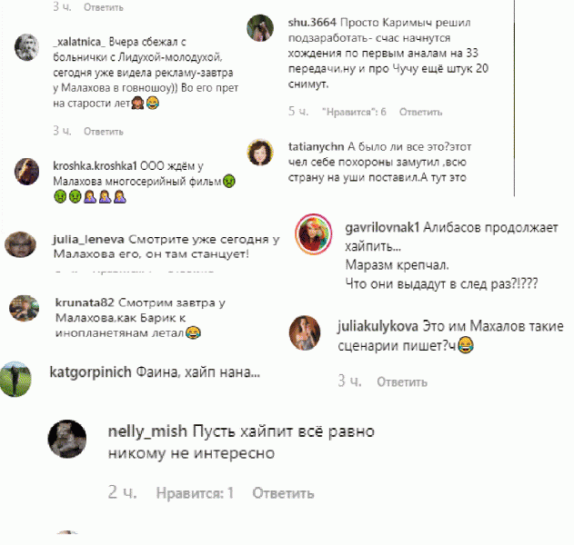 «Самопиар чистой воды! Не верю!», «Просто Бари Каримович решил деньги подзаработать. Время прошло, про него уже все забыли, надо же как-то себя показать», «Пусть хайпит, ему уже никто не верит», «Ну, сначала всю страну на уши поставил своей «смертью», а теперь отравлением», «Завтра смотри, как Малахов на нем станцует!», «Вчера «помирал», завтра у Малахова», - возмущаются пользователи и призывают Бари Каримовича портить здоровье ради пиара.