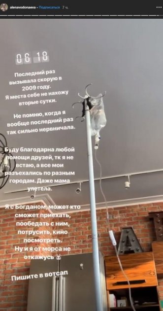 Так, буквально месяц назад, после катастрофы с рейсом Москва – Мурманск, когда погибло 40 человек, Алена «вещала» о своем потрясении на весь интернет. Ведущая активно встревала в споры о возникшей давке на борту самолета и по итогу даже слегла с нервным срывом, о чем конечно же оповестила своих фанатов. Любопытно также, что Водонаева демонстрировала широкой общественности свое тяжелое состояние и даже показывала капельницу. Так зачем же было критиковать за точно такой же поступок Алибасова-младшего? Черный пиар?