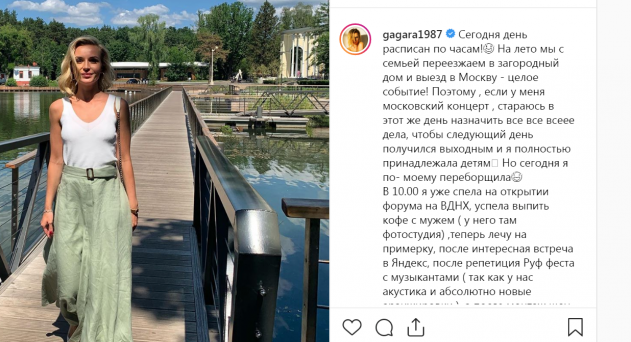 Отечественная певица Полина Гагарина так увлеклась подробностями своей популярности в мире шоу-бизнеса, что проговорилась в своём Instagram о возможных проблемах в отношениях с мужем, светским фотографом Дмитрием Исхаковым. Артистка старательно расписала в подробностях о своих ближайших планах: и открытие форума на ВДНХ, и деловые встречи в «Яндексе», и репетиции, монтажи, съёмки.
