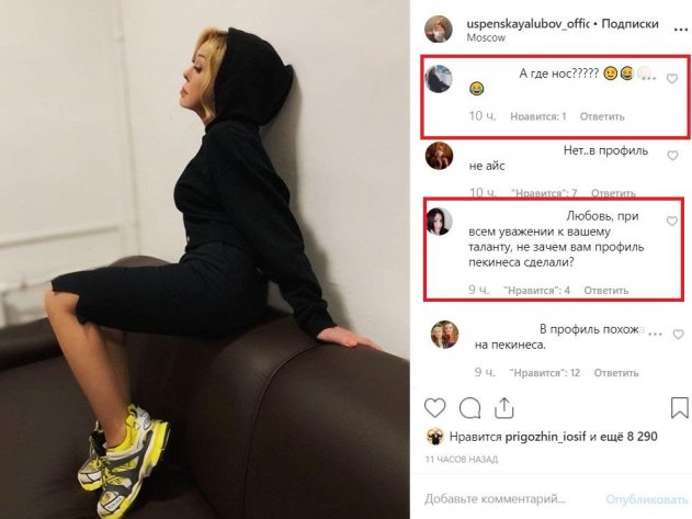 «Любовь, при всем уважении к вашему таланту, зачем вам профиль пекинеса сделали?» - недоумевают поклонники в комментариях к записи.