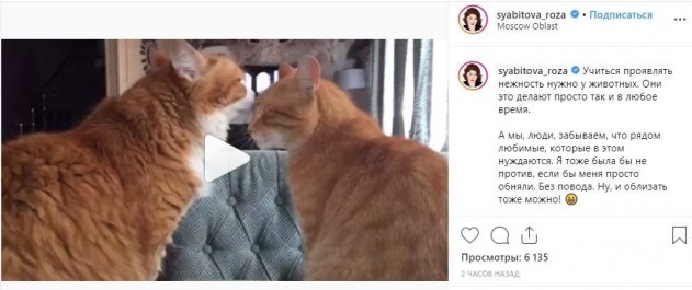 Теперь оказалось, что дважды разведённая звезда Первого канала «скучает» по настоящей любви и романтическим отношениям. В своём Instagram-аккаунте Сябитова призвала людей больше проявлять нежностей к окружающим, но ещё и заметила, что она не была бы против открытых чувств в свою сторону.