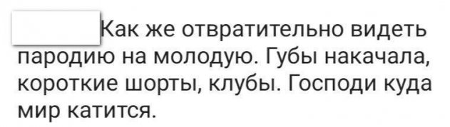 Видимо, пытаясь скрыть «алкогольные» и возрастные изменения во внешности она начала молодиться, а потому разгуливает по дому в нарядах «не по возрасту» и «подсела» на пластику. «Пародия на молодую» Хакамаду взбесила хейтеров — Ирину осудили за ненадлежащий вид и поведение. По мнению подписчиков, Хакамада, несмотря на возраст, «накачала» губы и бегом по клубам!
