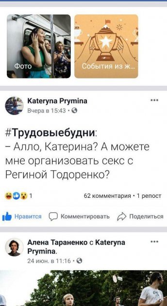 Недавно Екатерина Примина, пиар-директор Регины Тодоренко, поделилась на своей странице интересной публикацией из серии «Трудовые будни». «Алло, Катерина? А можете мне организовать секс с Региной Тодоренко?», - написала Екатерина. Вероятно, пиарщик Тодоренко решила развеселить подписчиков, намекнув им, что трудовые будни у нее бывают очень веселыми из-за таких необычных просьб звонящих. Как отреагировала сама Примина на такой звонок и что ответила абоненту, неизвестно.