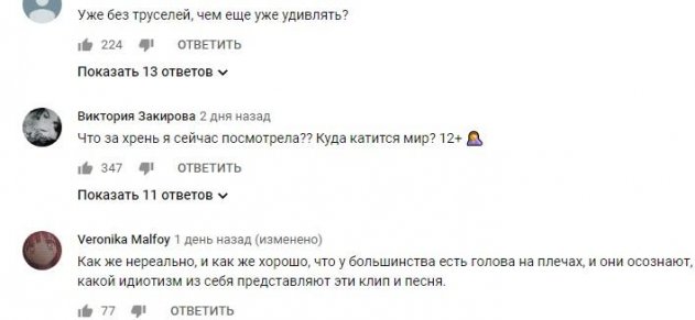 «Как же нереально, и как же хорошо, что у большинства есть голова на плечах, и они осознают, какой идиотизм из себя представляют эти клип и песня», «Вот из-за таких Яжемать, дети сами в 15 становятся матерями! Как заниматься интимом, так с 18, а эту порнуху смотреть с 12 можно! Мне за 30,даже мне это смотреть было противно», — пишут шокированные обозреватели.
