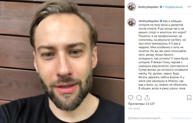 Шепелев записал видеообращение к фанатам на своем аккаунте в Instagram, в котором задается вопросом, совместимы ли распитие спиртных напитков и занятия спортом. Очевидно, что такой вопрос следовало бы задать фитнес-тренеру или профессиональному спортсмену, но Дмитрий обращается с ним именно к подписчикам. Надо полагать, что сделано это потому, как любой знаток спорта посоветует звездному ведущему значительно сократить употребление алкоголя либо отказаться от него вовсе, а сам Шепелев признался, что не может устоять перед спиртным. Не секрет, что пара бокалов вина в неделю вреда для организма не несет, но ведущий отмечает: «Ноги первый раз в жизни не несут». Это может означать только одно: накануне Дмитрий выпил явно не один бокал, и возможно даже не вина.