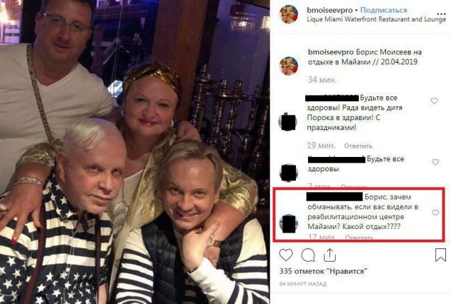 Несмотря на то, что Моисеев указал, что находится в солнечном городе на отдыхе, в Сети ему не поверили и выдвинули свою версию: по мнению пользователей, Борис Моисеев скрывает свою реабилитацию в Майами, а кто-то даже утверждает, что самолично видел певца в одном их медицинских центров.