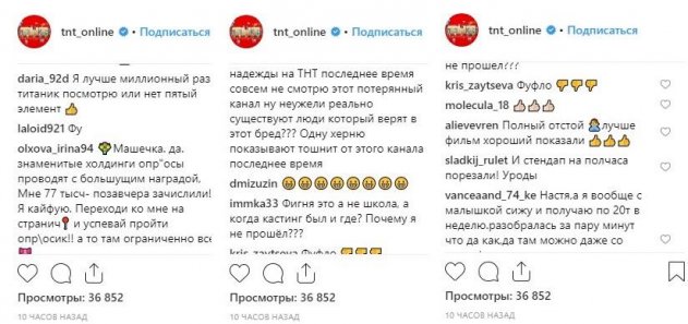 Зрители уже в ярости от того, насколько низкого качества содержание показывают на канале: «ТНТ. Тошнота. Нервы. Тупость» - написал, видимо, не выдержав один из подписчиков канала ТНТ в Instagram на анонсе шоу «Школа экстрасенсов».