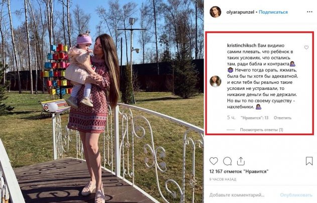 Вечные скандалы и съёмки могут навредить здоровью малышки, оставив за собой след на всю жизнь. Сейчас Ольга начала участвовать в проекте «Дом-2. Спаси свою любовь» вместе с мужем и дочерью, чтобы возобновить былые чувства в браке.