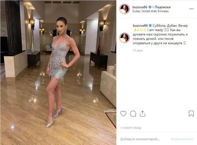 Ведущая «Дома-2» Ольга Бузова, кажется, бесповоротно растворилась к красоте арабских ночей Дубая, а потому осталась там еще на одну ночь. К слову, прошлую звезда, по ее словам, проспала со своим пиарщиком Антоном Богословским, проснулась только после полудня. Потом артистка успела потанцевать на пляже под новую песню Филиппа Киркорова «Стеснение пропало», чем восхитила поп-короля. Близится вечер, и знаменитость уже навела марафет и спросила у своих поклонников, что же ей делать сегодня: пойти тихо-мирно поужинать или сходить на концерт некого друга. Впрочем, ясно, что вероятнее всего, Ольга в действительности собирается посетить концерт Егора Крида, который как раз проходит этим вечером, и поужинать с Богословским, скорее всего, не откажется – одно другому не мешает.