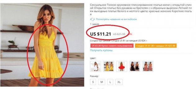 И всё бы ничего, вот только Пынзарь «попалась» на перепродаже вещей с AliExpress. Как оказалось, подобное платье можно заказать и в интернет-магазине, вот только стоимость наряда будет уже в 3 раза дешевле и не превысит ценник в 700 рублей.