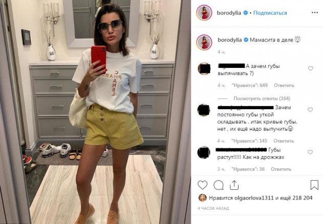 Не секрет, что Ксения – приверженица пластический операций и уколы красоты для неё – привычное дело. Вероятно, девушку перекосило из-за неудачной пластики – скорее всего, растёкся ботокс. По крайней мере, к такому выводу пришли пользователи Instagram. В соцсети пишут: «В губы пчела укусила?», «Что с губами?», «Зачем дуть губы так? В 18 лет это ещё простительно, в 36 смешно». Многие фанаты просят Бородину остановиться и прекратить издеваться над лицом, иначе от её естественной красоты не останется и следа.