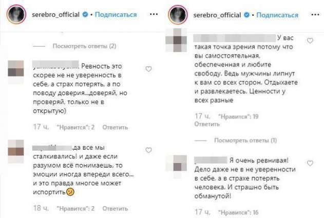 Многие фанаты не разделили с Серябкиной ее мнение, утверждая, что ревность так или иначе присутствует в отношениях.