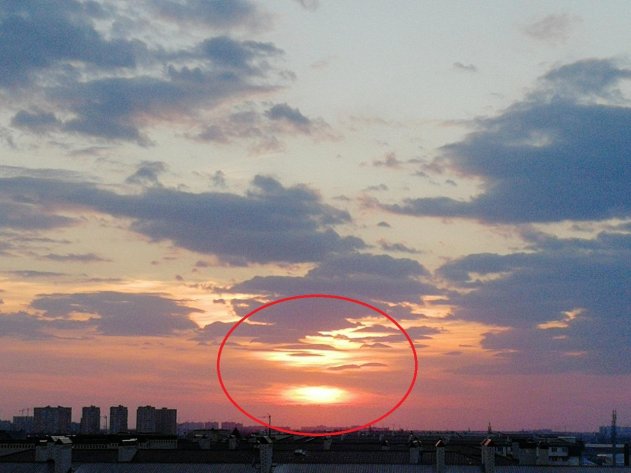 В доказательство конспирологи приводят снимки необычных закатов, сделанных в разных уголках планеты, а в частности и в России. Аномалия в Краснодаре якобы показывает газопылевое кольцо и отражаемый остатками Нибиру свет. Изображение Солнца и облаков наоборот растянуто и имеет потускневшее свечение, что также объясняется якобы наличием чёрной дыры.