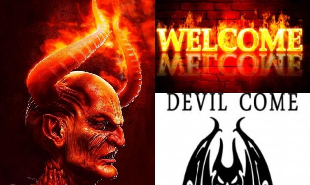 Welcome или Evil come написано под странной «мордой» двуглавого существа.