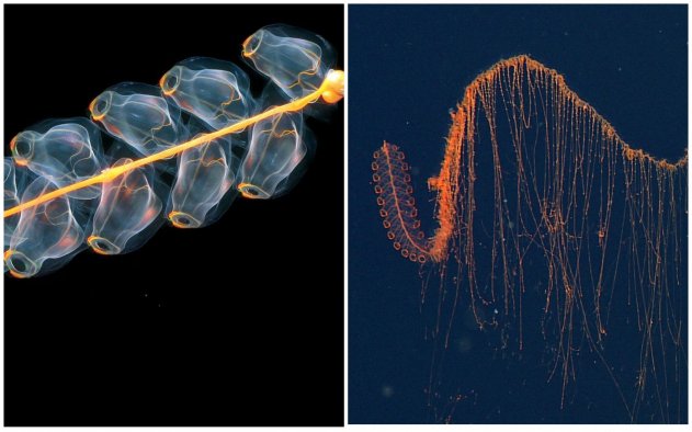 Антарктические морские животные называются сифонофоры. Они были обнаружены учёными при погружении в «полуночную зону». Так называется местность под водой, куда не проникают лучи солнечного света. Это произошло во время съёмок сериала BBC «Голубая планета-2» Дэвида Аттенборо. По его словам, в «полуночной зоне» разнообразие видов исследовано очень мало. Обитающие в ней существа «живут за пределами обычных правил времени».