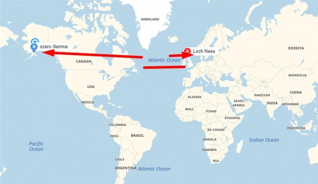Два года назад он и другие жители деревни увидели нечто похожее на группу существ, плавающих на поверхности в течение нескольких секунд. Они были примерно в миле от него, когда он заметил их в бинокль. Самый длинный был очень большим, может быть, 20 метров в длину, сказал он. Другие были немного меньше. Такое описание и сведения очевидцев оценили эксперты и сообщили, что вполне возможно, что Аляска и Британия «кишат» одинаковыми монстрами. Если присмотреться к карте, то видно – озёра находятся в похожих условиях, но на разных континентах.