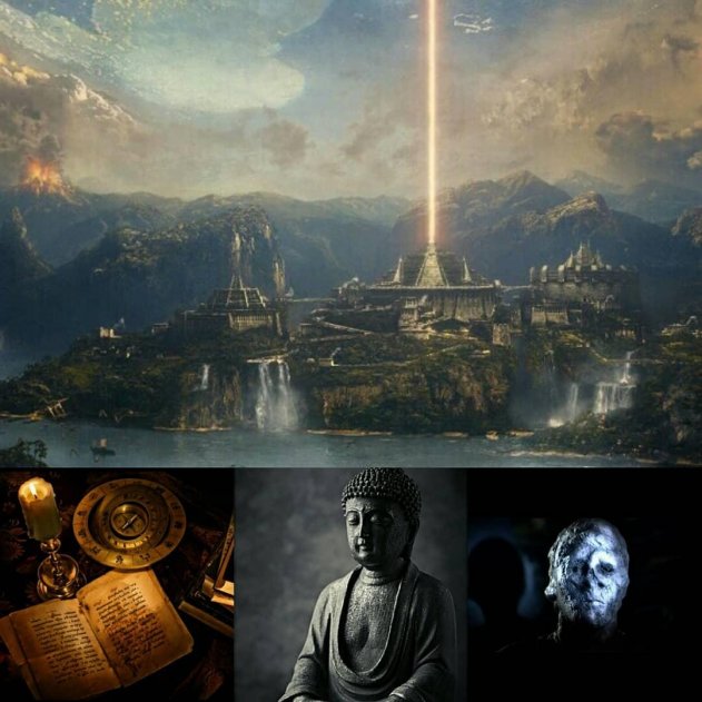 Одним из таких миров, упоминаемых в тибетских буддийских и индуистских традициях, является Шамбала, которая представляет собой скрытое царство на планете, место, которое трудно принять и осознать. Пока буддизм зарождался, многие археологи видят параллельную эволюцию в подчёркивании важности поклонения умершим людям. Вера позволила людям перейти от слепого поклонения к оплакиванию умерших сверхлюдей, в облике атлантов. Пророчество Шамбалы гласит, что каждый из 32 его царей будет править в течение 100 лет. По мере их правления условия во внешнем мире будут ухудшаться. Люди станут одержимы войной и будут стремиться к власти ради себя, и материализм победит всю духовную жизнь.