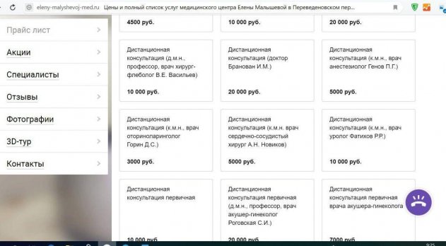 И, действительно, на сайте вам предлагают услуги по онлайн-консультацию за кругленькую сумму. Сумма в среднем варьируется за дистанционную консультацию от 10 000 до 20 000 рублей. А если прислушаться к тому, что говорит пациентка, то она осталась попросту «в дураках». Она перечислила деньги, но консультации так и не получила. А за последнее время клиника набрала огромное количество негативных отзывов. В дело в том, что к Елене часто обращаются люди с разных уголков России. На вопрос: «Кого вы мне посоветуете?» Она всегда отвечает: «Обратитесь в нашу клинику Елены Малышевой.