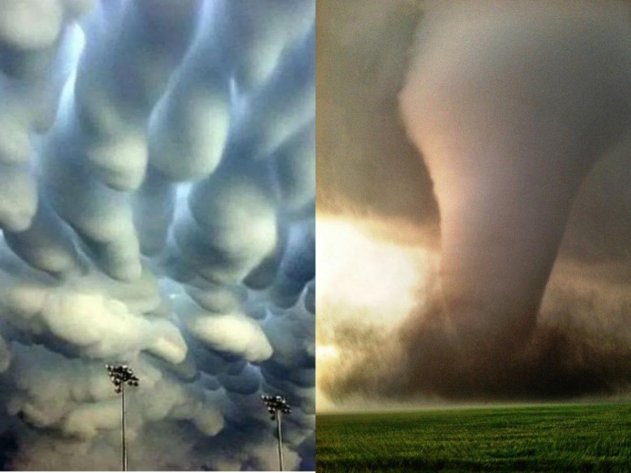 Каждый кокон (а их сотни) может в любую секунду превратится в торнадо, которое будет сметать все на своем пути, попутно бомбардируя землю градом. О размерах «ледышек» не хочется даже думать, особенно после того, как по всему миру сообщают о выпадении града размером с куриное яйцо. Такой «снаряд» вполне может покалечить. Но главное, торнадо будет не один. Их будет столько же, сколько коконов в небе. Какой еще нужен Апокалипсис?