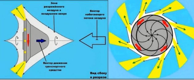 Исследователи изучили аэро и гидродинамические свойства современных кораблей и судов. Они определили, что сопротивление воды не даёт кораблям развить скорость выше чем 150 узлов (300 км/ч). Для того чтобы развить огромную скорость в гидросфере или в атмосфере нужно решить проблему лобового сопротивления — сейчас её решают за счёт придания транспортным средствам обтекаемой формы. Однако такой способ достиг своего предела. Специалисты решили проанализировать фото и видео с НЛО и представить обоснованность круглой формы их кораблей. Круглая полу-конусная форма корабля позволяет ему разредить воздушную и водную среду, тем самым уменьшив лобовое сопротивление и предотвратить проблему нагрева корпуса. Также в разрежении помогают вихри, возникающие из-за сил центробежного вращения. Силовая установка пришельцев позволяет им создавать вихри вокруг корабля и выполняет функцию маршевых двигателей. Такие воздушные вихри могут с легкостью вырвать находящуюся под ними траву и создать знаменитые «круги на полях».